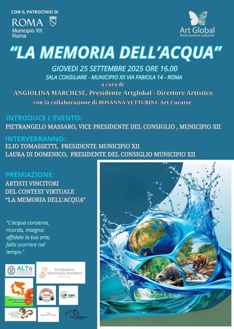 L'evento "La memoria dell'acqua" è stato organizzato da Angiolina Marchese, Presidente dell'associazione Artglobal e Direttrice Artistica dell’evento, Rosanna Vetturini, Art Curator, Pietrangelo Massaro, Vicepresidente del Consiglio, Elio Tomassetti, Presidente del Municipio XII, Laura Di Domenico, Presidente del Consiglio del Municipio XII Roma.